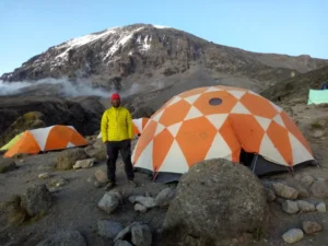 For our trips, Climbers will sleep in four-season mountain tents during the trek. We only use the best products and High-quality branded equipment and gear, such as Mountain Hardwear and Eureka tents. Our Mountain Hardwear and Eureka tents are warm, waterproof, and roomy – perfectly suited for your Kilimanjaro adventure. It is a standard option for the Mount Everest expeditions, where the conditions are much harsher than on Kilimanjaro.